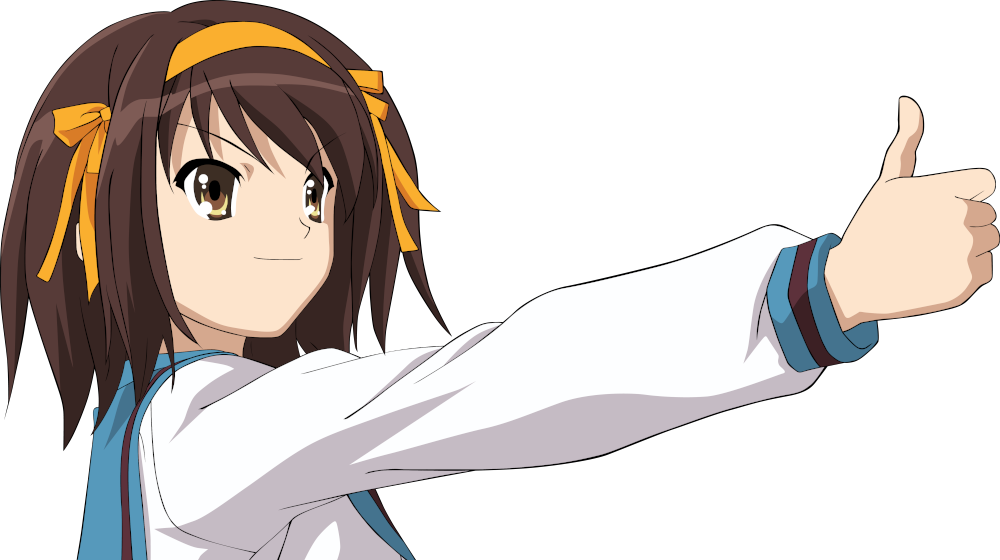 Glad to hear! In fact, I have been reading the light novel recently. Yuki is best girl! > Yes> No, Haruhi best girl> No, Mikuru best girl> No, Koizumi best girl> No, Kyon best girl> No, Ryoko best girl